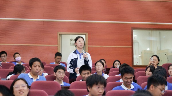 这是一次难得的与经验丰富的学者探讨问题的机会,在交流互动环节,大家十分踊跃,有同学询问了如何使用电脑进行数学分析与计算,也有同学提出手机设计与物理的相关性,还有同学思考怎么排除空气阻力对实验的影响等问题,教授一一作了回答,并提出在大学可以学习跨学科知识,以便将物理与其他更好结合,去发现更多可能性,鼓励同学们多去探索与思考。