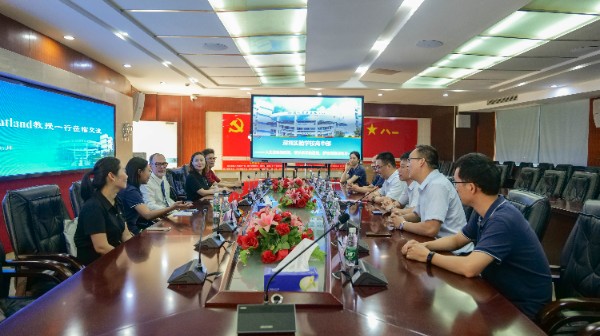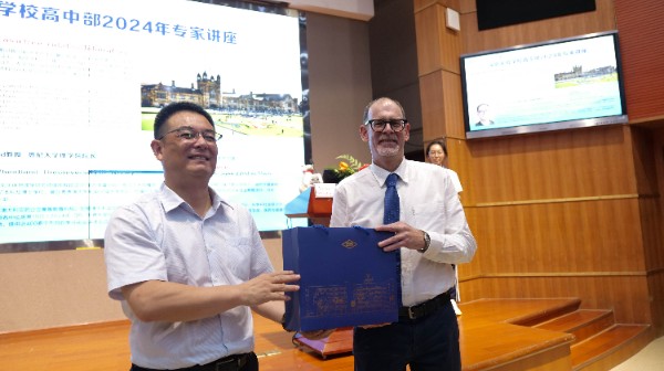 深圳实验学校党委副书记、副校长、高中部执行校长邓旭携高中部处室主任、教师代表热情接待Michael Wheatland教授一行莅临高中部,交流座谈、致辞欢迎、赠送纪念品,介绍实验学校的办学理念和教育教学成果。