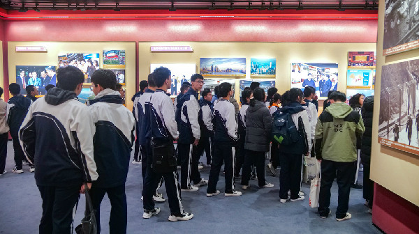 走出校园,步入前海。映入眼帘的是蓝绿交织、山海融城的现代化生态新城景象。思政课的第一站是前海国际会议中心,团员们参观了“从先行先试到先行示范——庆祝深圳经济特区建立40周年展览”, 展览以时间为轴线,以主题为节点,以图片、视频、实物等多种形式展示了深圳经济特区从无到有、从小到大、从弱到强的历史变迁和成就。展览分为四个部分,第一部分集中展示深圳经济特区建立40年的发展历程,第二部分展示新时代深圳经济特区的改革发展成就,第三部分展示深圳推进大湾区建设成效,第四部分展示深圳先行示范区建设进展,展示经济、社会发展“双胜利”的工作成效。同学们在观看展览的过程中感受到特区中的“特区”创新发展成果和先行示范再出发的示范区精神,增强了责任感和使命感,激发了爱国之情、强国之志。