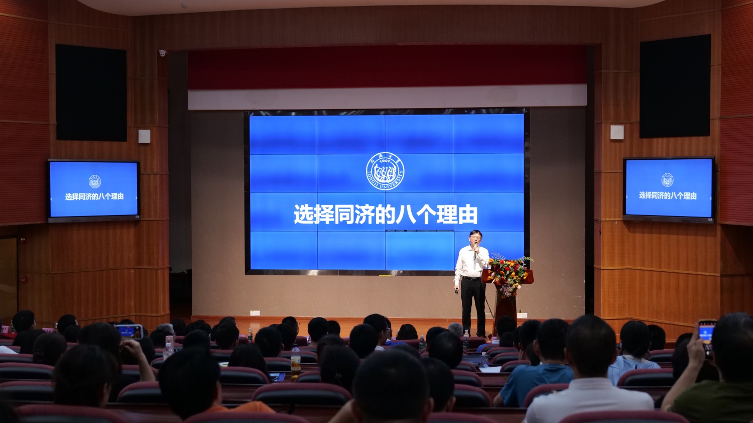 方守恩教授从来同济感受魔都魅力、来同济尊享综合实力、来同济探索AI奥秘、来同济叩开世界大门、来同济成为国之英豪、来同济创出不凡成就、来同济拥抱浪漫人生、来同济续写百廿故事八个维度阐述选择同济的八个理由。