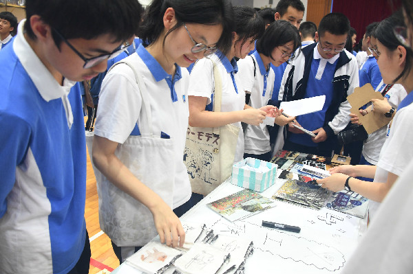 大受欢迎的7号摊位所卖的教师卡牌取灵感于拍卖会的拍品2013教师扑克牌,这是一件极具收藏意义的商品,引得同学们纷纷购买。高一(1)班摊位甚至将年级成绩第一的同学签名作为商品,借助“偶像”的力量亦是独具创新。