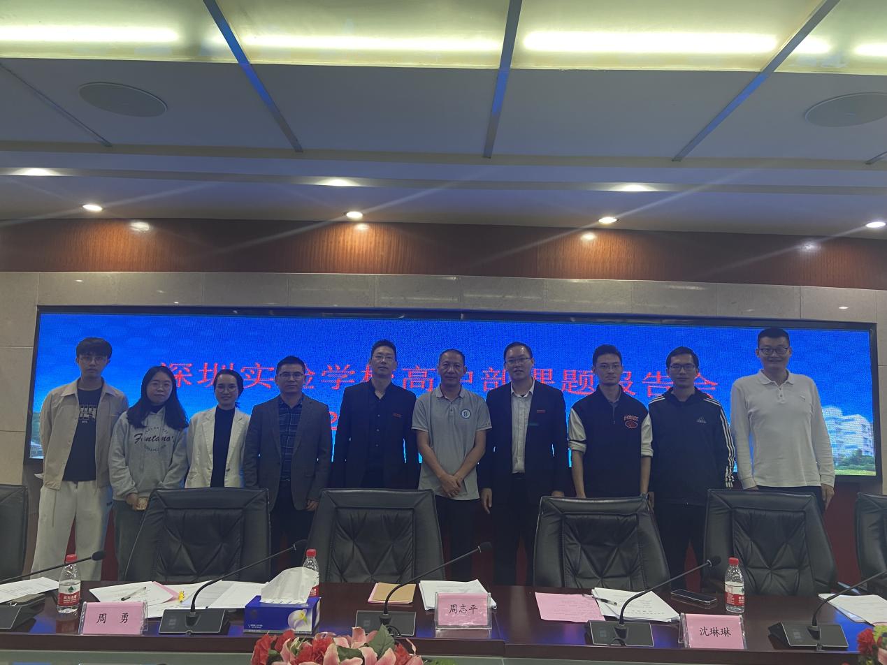 深圳大学大数据系统计算技术国家工程实验室副主任沈琳琳教授、深圳市教育局德体卫艺处德育专干高恩扬、深圳市教育科学研究院德育研学实践教研员卢艳红博士、深圳实验学校高中园崇文高中学生处主任高丽老师、深圳实验学校教育教学部副主任於胜成老师、深圳实验学校高中部教务处副主任周勇老师、化学国际金牌教练,深圳实验学校高中部化学学科主任周志平老师、深圳实验学校高中部英语学科主任许培婧老师出席会议并对本次课题报告进行深入的评议和指导,为科研人员提供了诸多有益的建议和启示。