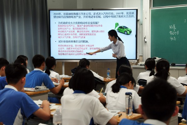 郑秀玉局长一行走进高中部常规课堂,深入了解教育教学情况,市教科院李有阶主任陪同听课。张晓敏老师的《工业区位因素及其变化》地理课堂创设比亚迪公司发展历程真实的情境案例,通过引导学生分析比亚迪公司发展过程中不同阶段影响其生产布局的区位因素的方式,帮助学生领悟学科知识,培养学生综合思维、区域认知、地理实践力、人地协调观等学科核心素养,并渗透鲜明的跨学科融合特色和学科育人价值。市教科院冉杰教研员评价目标明确、重点突出,体现了新课程理念下的地理教学“五化”:教学过程情境化、教学内容问题化、学科教学育人化、学科知识结构化、课堂学生主体化。