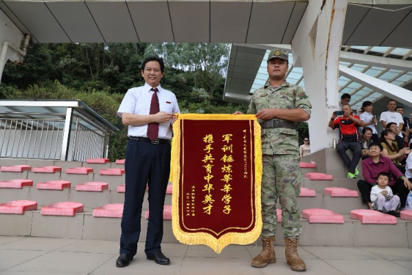 数日的朝夕相处中,教官为同学们付出了许多。夏育华书记为中国人民解放军75610部队赠送锦旗,以表达对他们为同学们提供一丝不苟训练的诚挚感谢。军训的一周内,教官学子同甘共苦,在烈日下挥洒汗水,携手共进为军训画上了一个完美的句号。