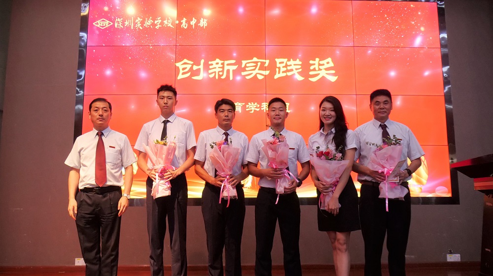 “创新集体备课,一人主备,全组演示,提升体育学科整体教学水平;创编体能操,重塑课间操,流行旋律燃烧青春激情;创建评价手册,记录学生成长每一个脚印,推广惠及深圳中小学校。”刘盛举副部主任为体育学科教师代表颁发“创新实践奖”。