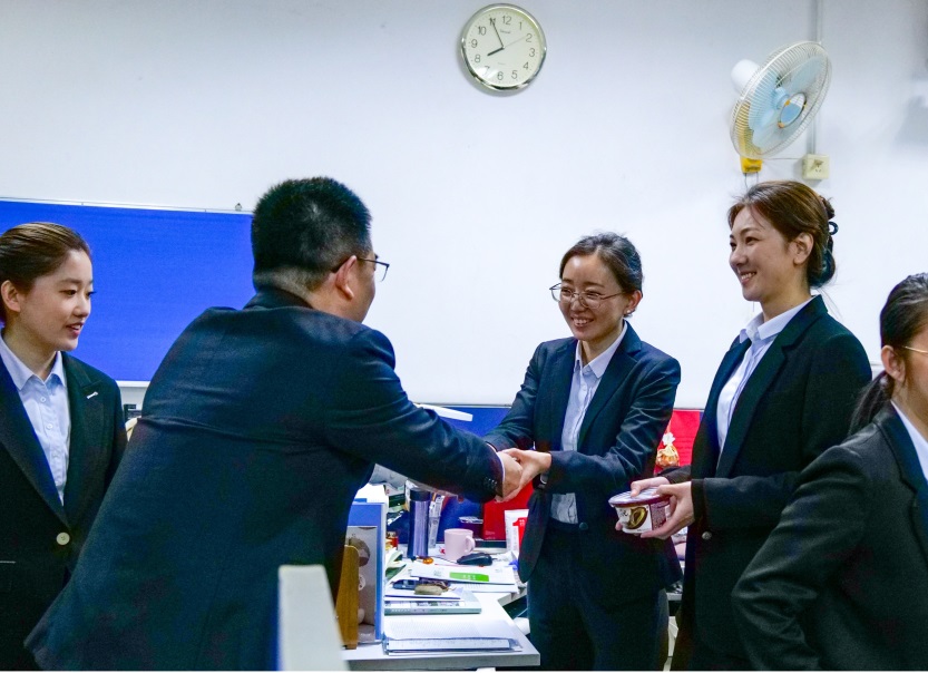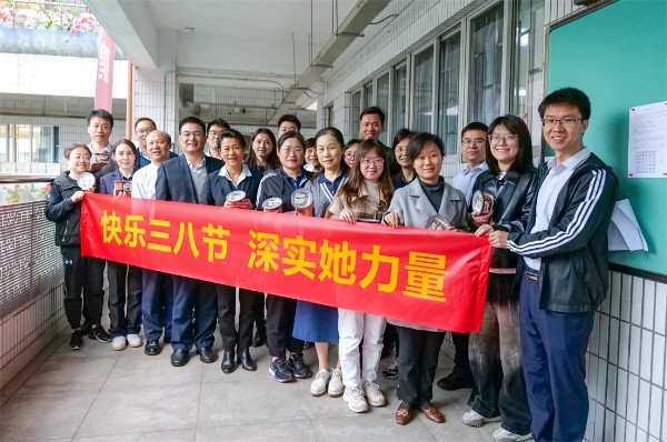 妇女节当天上午,党总支书记邓旭校长、工会主席吴平波主任及行政干部等共赴三个年级办公室,慰问在岗的女教师们。邓旭校长与每位女教师们亲切交谈,了解她们的工作和生活情况,并亲自送上节日的祝福和慰问品。这份关怀和尊重,让女教师们倍感温暖与鼓舞。