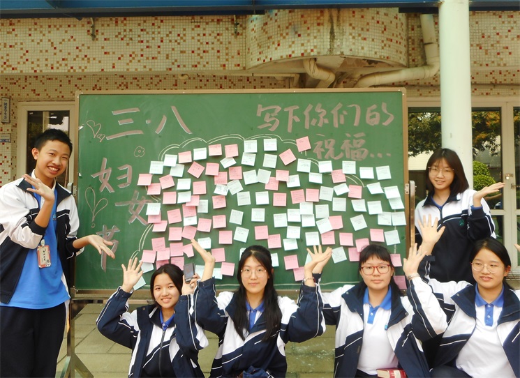 团委学生会成员们在前往食堂的必经之路设下一块大黑板,邀请路过的师生为女生们写下祝福。随着午餐时间的到来,同学们纷纷停下脚步,有的思考片刻,有的挥笔即写。不一会儿,黑板就被各式各样的便签条覆盖,写满了对女生的关心和美好祝愿。这面祝福墙,不仅展现了深实验学子的温暖与创意,更成为了当天校园里最亮丽的一道风景线。