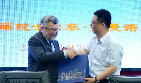 深圳实验学校党委副书记、副校长、高中部执行校长邓旭携高中部处室主任、教师代表热情欢迎杰曼诺夫教授一行莅临高中部,双方在热情友好的气氛中交流座谈、赠送纪念品,我校还介绍实验学校的办学理念和教育教学成果,得到教授的高度赞赏。