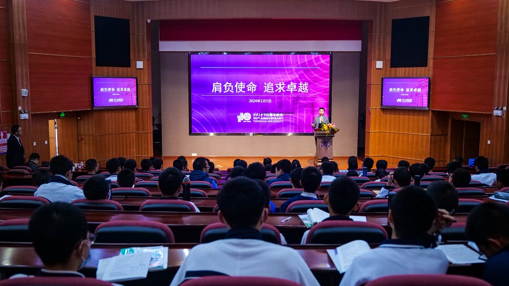 钟海旺组长作了题为《肩负使命 追求卓越》的专题讲座,讲座中系统介绍了清华大学的历史沿革、办学理念、精神文化、科研成果、本科招生政策、专业设置、发展前景和毕业生就业情况。钟海旺组长指出清华大学人才选拔培养的定位是服务国家重大战略,为国家基础学科的长期发展、关键研究领域的重点突破培养拔尖领军型人才。随后,钟海旺组长与优秀学子们进行交流并对他们做出了指导,详细回答了同学们关于清华大学专业设置、强基计划等热点问题。最后,钟海旺组长鼓励同学们脚踏实地,砥砺奋进,争取考入清华大学并选择自己喜欢的专业,圆梦清华。