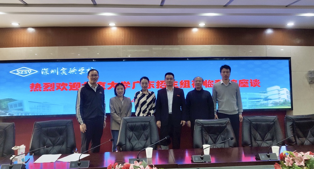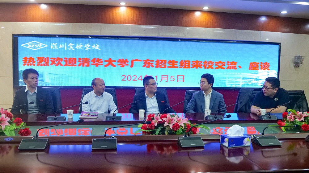 2024年1月5日,清华大学广东招生组组长钟海旺组长和清华大学深圳招生负责人马文渊老师亲临高中部与我校优秀学子座谈,这也是钟组长2024年广东之行的第一站。座谈开始前,我校邓旭校长对清华大学广东招生组的到来表示诚挚的欢迎,对清华大学长期以来对我校教育工作的关心和支持表示衷心的感谢,邓旭校长介绍了实验高中部的办学情况,特别是我校在拔尖创新人才培养上的举措和成果。