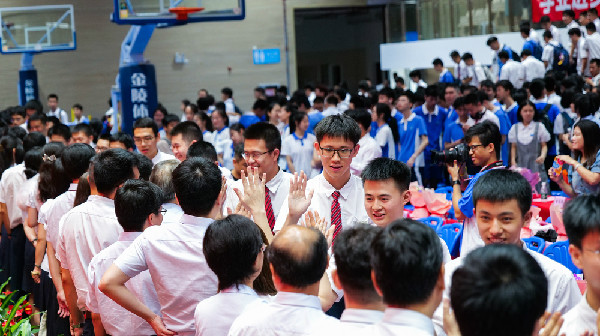 典礼在青春激昂的《实验之路春常在》校歌中落下帷幕。全体教师站成一列,同学们按班级有序向前与所有老师一一握手、击掌道别,看着熟悉的老师同学们不禁落泪,离别的泪水,是成长的见证,也是对过去美好时光的怀念。全体老师也希望同学们记住你们多彩青春中的一抹实验蓝,无论风吹还是雨打,实验就在这里,为你遮风挡雨,无论烈日还是酷暑,实验就在这里,为你干云蔽日。愿同学们从实验出发,走向光辉前程。(文/学生处 图/影视中心)