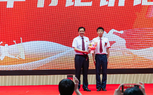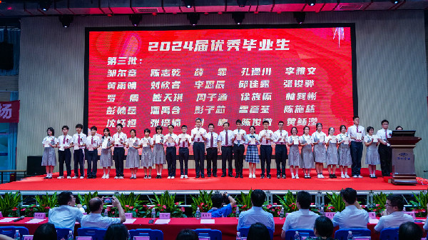 裴绍才主任宣读了《关于准予曾睿鸣等509名学生毕业的决定》和《关于表彰曾睿鸣等98名优秀高中毕业生的决定》两项决定。夏育华书记、邓旭校长为学生代表颁发毕业证和优秀毕业生荣誉证书。