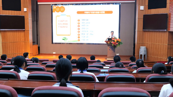 今年是中国共产党建党100周年,全国上下掀起学党史、学国史的热潮。百年的奋斗历程,中国共产党带领人民取得革命的胜利,正行走在中华民族伟大复兴的道路上。共青团员是党的后备力量,2021年6月18日,高中部党总支书记李震宇,为全体青年团员上了一节生动丰富的党课。本次党课教育与新团员入团仪式相结合,提升了新团员的思想意识,壮大了团组织力量,为团组织输入了新鲜的血液,注入了新的活力。