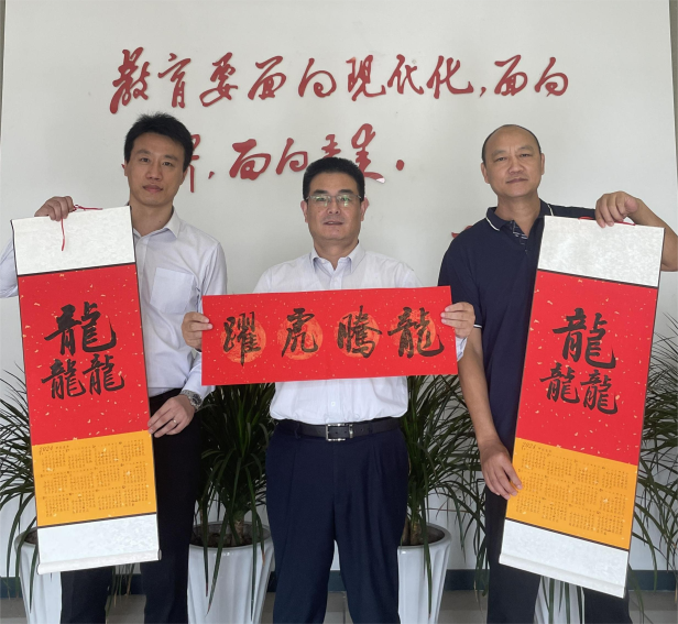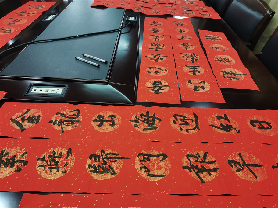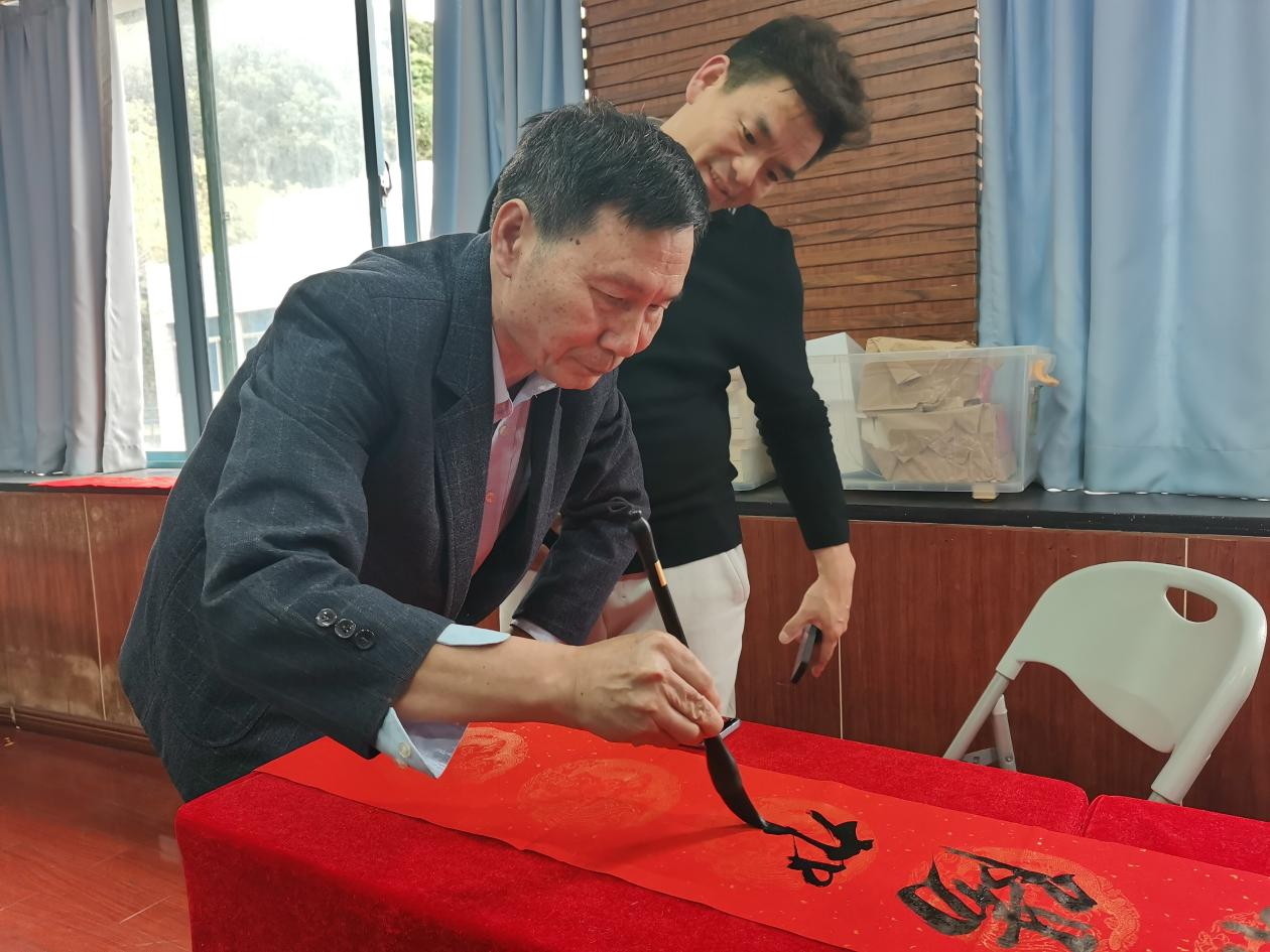 深圳实验学校党委副书记、全面主持行政工作副校长、高中部党总支书记邓旭表示,春节是中华民族祈福迎祥的传统节日,贴春联是中国人过春节的文化传统之一,写春联、送喜庆更是弘扬中华民族优秀传统文化的良好形式,在此祝福全体师生“龙行龘龘,前程朤朤”。高中部工会主席吴平波介绍说,工会组织教职工写春联、为教职工送春联,不但是送新春的祝福,而且还是送优秀传统文化。希望通过这种形式,让教职工们感受春联的魅力,体会书法的魅力,营造新春喜庆祥和的气氛。