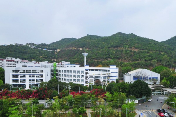 实验学校高中部座落在西丽湖畔官龙山下,环境优雅、设施完善。这里有最具现代化水准的大型综合性体育馆(篮排球、羽毛球、乒乓球、标准室内游泳馆),有藏书量达13万册的图书馆,有深圳市数学学会挂牌的全市首屈一指的“数学实验室”,全市最早的机器人实验室、高端配置的高分子实验室、生物基因工程实验室,还有功能齐全的校园一卡通系统、学生餐饮服务系统、规格最高而安全的学生宿舍管理系统。