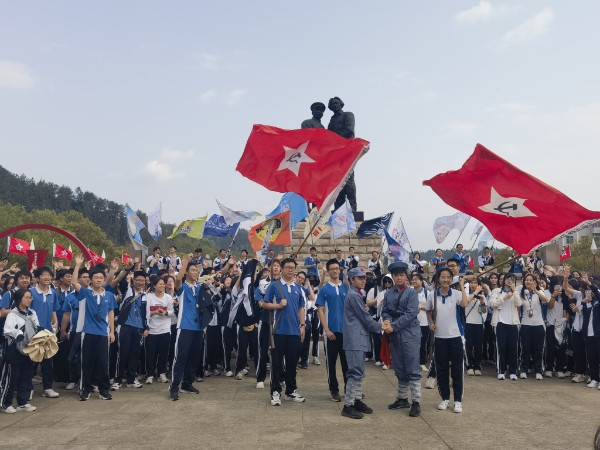 风雨百年,青史可鉴。两支英雄的部队汇聚成一股强大的革命力量,从此,中国革命和人民军队的历史翻开了新的一页。会师广场前,朱毛会师像在岁月的磨洗下熠熠生辉,炽热的革命星星之火在同学们心中熊熊燃烧。