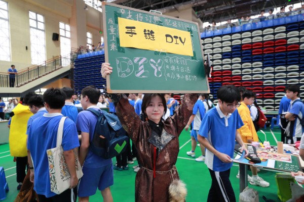 漆扇轻摇,古风扑面而来;DIY手链色彩斑斓,每一串都承载着独特的情感与故事;人体彩绘摊位更是将艺术融入生活,同学们化身画布,展现出无限创意;创意手工艺品摊位前人头攒动,同学们争相购买这些充满创意和个性的手工艺品,仿佛每一件都蕴含着青春的热情与活力。