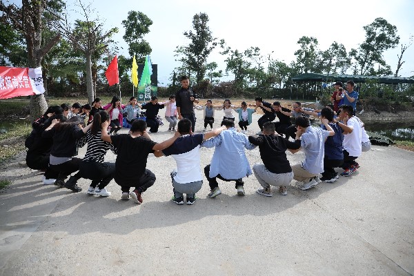 上午9时许,参加此次活动的光明部领导及青年教师顺利抵达目的地。活动伊始,为了拉近各学科以及不同部门青年教师之间的距离,负责拓展活动的教练团队随即调整队列,展开包括自我介绍、相互握手的破冰活动。短暂而紧凑的破冰活动让青年教师们逐渐“热”了起来。紧接着青年教师被分为四个小组,按照教练安排,各个小组需要在规定的时间内协作完成团队起名、口号制定、旗帜绘制、队形编排的任务,最后以小组为单位集体亮相展示。