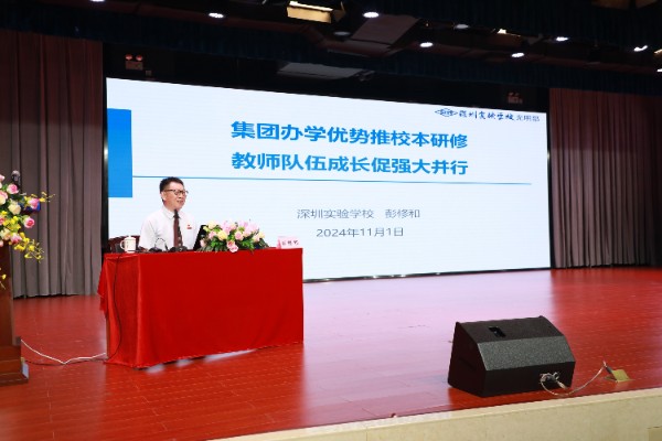 由广东第二师范学院主办的2024年广东省校本研修示范学校和培育学校学科首席专家专项培训(高中组)11月1日、2日的培训活动在深圳实验学校光明部进行。本次活动主题为“新高考·新课标:核心素养为本的校本研修与教师专业发展”,在我校培训期间,活动设公开课1节,18名教育专家作学术分享。