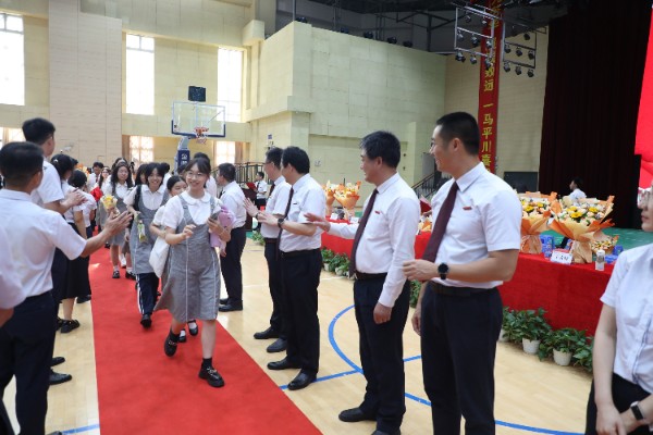 典礼结束,全体教师列队立于两侧,目送学子们依次离场。学生们迈着坚定的步伐走过成人门,走出文体馆。有人回头望见老师们依然保持着送别的姿势,有人的掌心还留着老师手心的温度。阳光洒在他们的肩上,仿佛为他们的未来镀上一层金色的希望。