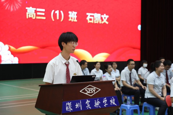 来自高二的李泽洋、张轩瑜、彭佳琳三位同学走向舞台中央,《凤凰花开的路口》的前奏如水般流淌开来,“时光的河入海流,终于我们分头走……”清澈的嗓音在文体馆上空交织,悠扬的旋律唤起了在场师生对三年同窗情谊的回忆,许多同学轻声跟唱,现场气氛温馨感人。来自高二的李泽洋、张轩瑜、彭佳琳三位同学走向舞台中央,《凤凰花开的路口》的前奏如水般流淌开来,“时光的河入海流,终于我们分头走……”清澈的嗓音在文体馆上空交织,悠扬的旋律唤起了在场师生对三年同窗情谊的回忆,许多同学轻声跟唱,现场气氛温馨感人。最后,全体师生齐声唱响深圳实验学校校歌。“银湖边的春雨,滋润了我们的青春……”熟悉的旋律回荡在馆中,歌声里饱含着对母校的眷恋和对未来的憧憬。在饱含祝福的校歌声中,毕业典礼圆满落下帷幕。