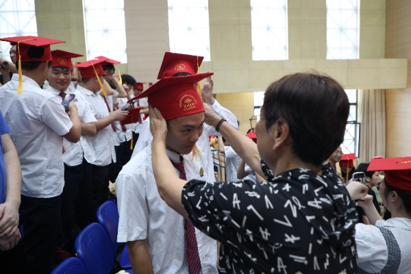 15时整,在中华人民共和国国歌雄壮的旋律中,学子们目光坚定,年轻的面庞映着鲜红的国旗,清澈的眼眸里跳动着理想的火焰。这一刻,他们真正读懂了“成人”二字的千钧重量——不仅是身体的成长,更是精神的拔节。最动人的环节莫过于成人礼仪式。学子们缓缓转身面向家长,由亲爱的爸爸妈妈为他们佩戴成人帽和成人徽章,并轻轻拨动帽穗。帽穗从右至左,象征着麦穗成熟,少年蜕变为肩负责任的青年。许多家长眼中噙着泪水,而学子们则挺直脊背,接受这份成长的祝福。