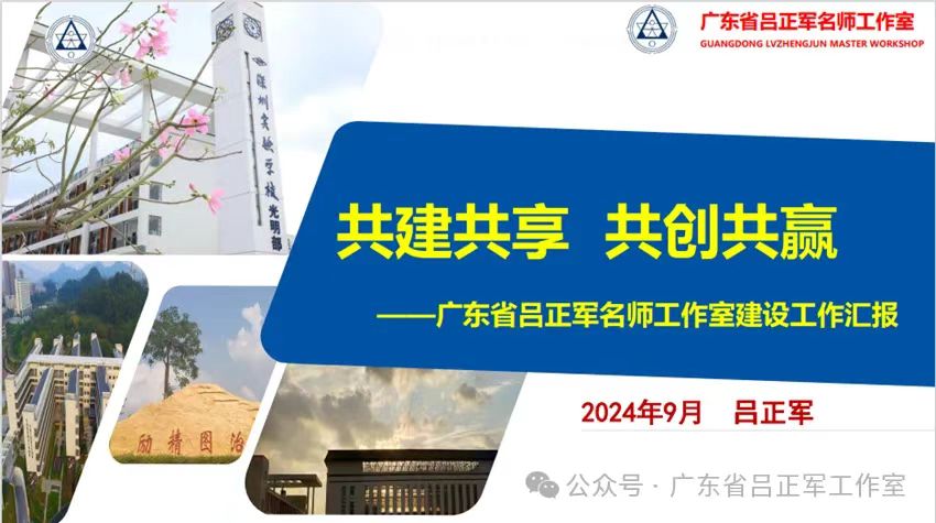 工作室主持人吕正军老师以《共建共享,共创共赢》为题做了关于工作室建设的报告,详细介绍了工作室的概况、建设方案、规划与制度、预期成果等。