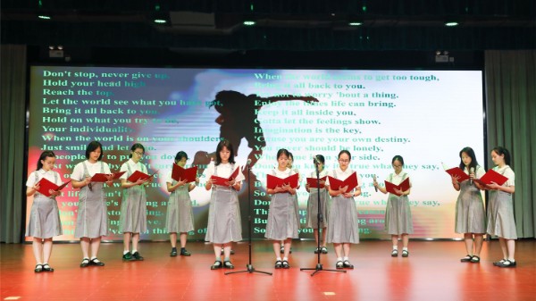 第三组同学呼吁大家Bring It All Back《找回自己》,在激昂的音乐中表达了遇到艰难不退却的决心。