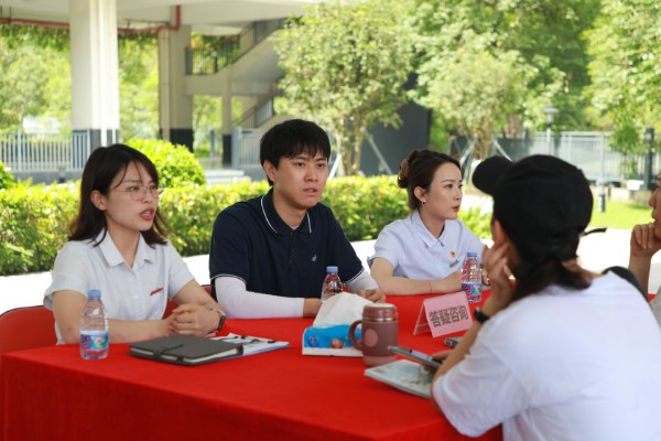 除了特色课程的展示,为了让家长们全面、深入了解光明部,光明部老师们在教学楼一楼的答疑台为家长们答疑解惑。