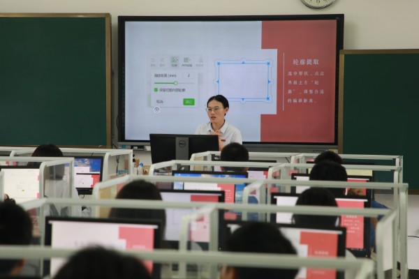 信息技术赵莉老师教授《激光切割设计与建模》一课以“礼物”为主题,教授学生使用激光切割软件。学生们通过学习形状尺寸、轮廓提取、图形合并、文字设置、工艺选择等设计技巧,在母亲节来临之际为妈妈设计一个挂坠作为礼物。课堂上赵老师也鼓励听课的家长参与体验设计过程,设计一把带有祝福的直尺送给所有考生。最后,利用激光切割机将设计变为实物,赠予亲人。