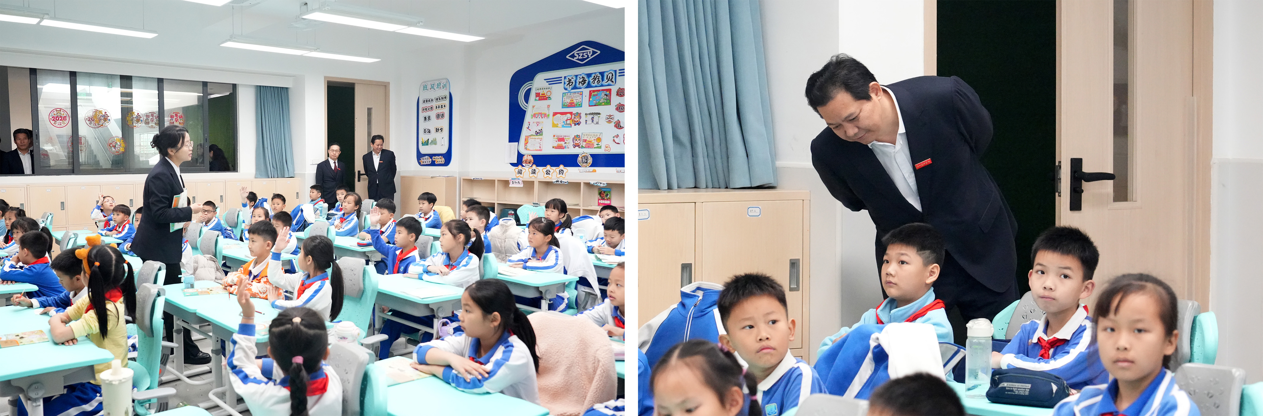 在巡视各班的过程中,夏书记一行重点关注课堂师生互动质态与班级文化浸润效果,对明湖学校精心打造的“会说话”的墙面、“有温度”的角落等育人环境表示充分肯定。