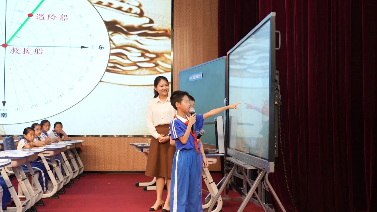 光明区公明第二小学沈玉鑫老师在《绘制营救路线图——用方向与距离确定位置》的研讨课中,以大海中的救援故事为背景,以航海中常见的雷达图为纽带,以北师大版数学五年级下册教材第六单元“用方向与距离确定位置”的教学内容为基础,设计了微项目学习主题——绘制营救路线图。旨在引导学生在深度体验“设计营救路线图”的任务过程中,主动建构与应用新知——用方向与距离确定位置,发展学生的空间观念和应用意识。