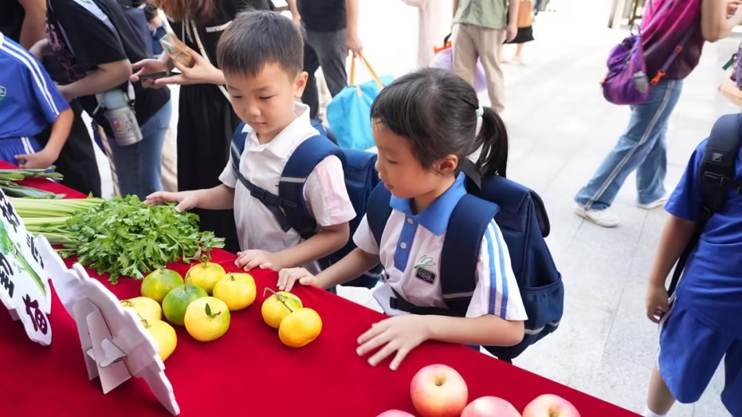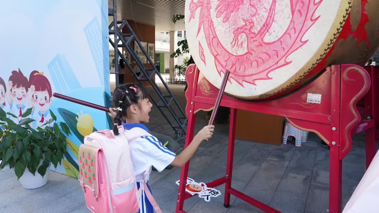 走过成长门,“摸意头”环节让孩子们眼前一亮。一敲小鼓,愿孩子们“一鸣惊人”;摸一摸桔子,盼“大吉大利”;碰一碰苹果,祝“平平安安”;握一握棒棒糖,愿“身体棒棒”;再摸芹菜与大葱,祈“勤勤恳恳”“聪明伶俐”。简单的动作里,满是学校对孩子们的美好祝福,也让孩子们在趣味中感受入学的喜悦。