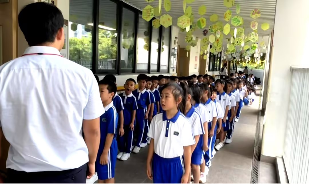 体育老师们早已做好准备,为一年级各班开展队列训练。老师用生动的口令和形象的比喻引导孩子:“像小树苗一样站直”“小手贴紧裤缝”,从简单的立正、稍息,到有序的原地踏步,孩子们认真模仿,小脸上满是专注。通过反复练习,原本略显松散的队伍逐渐整齐,不仅让孩子们初步掌握了队列基本规范,更在互动中展现出小学生的蓬勃朝气,为今后的体育课和集体活动打下基础。