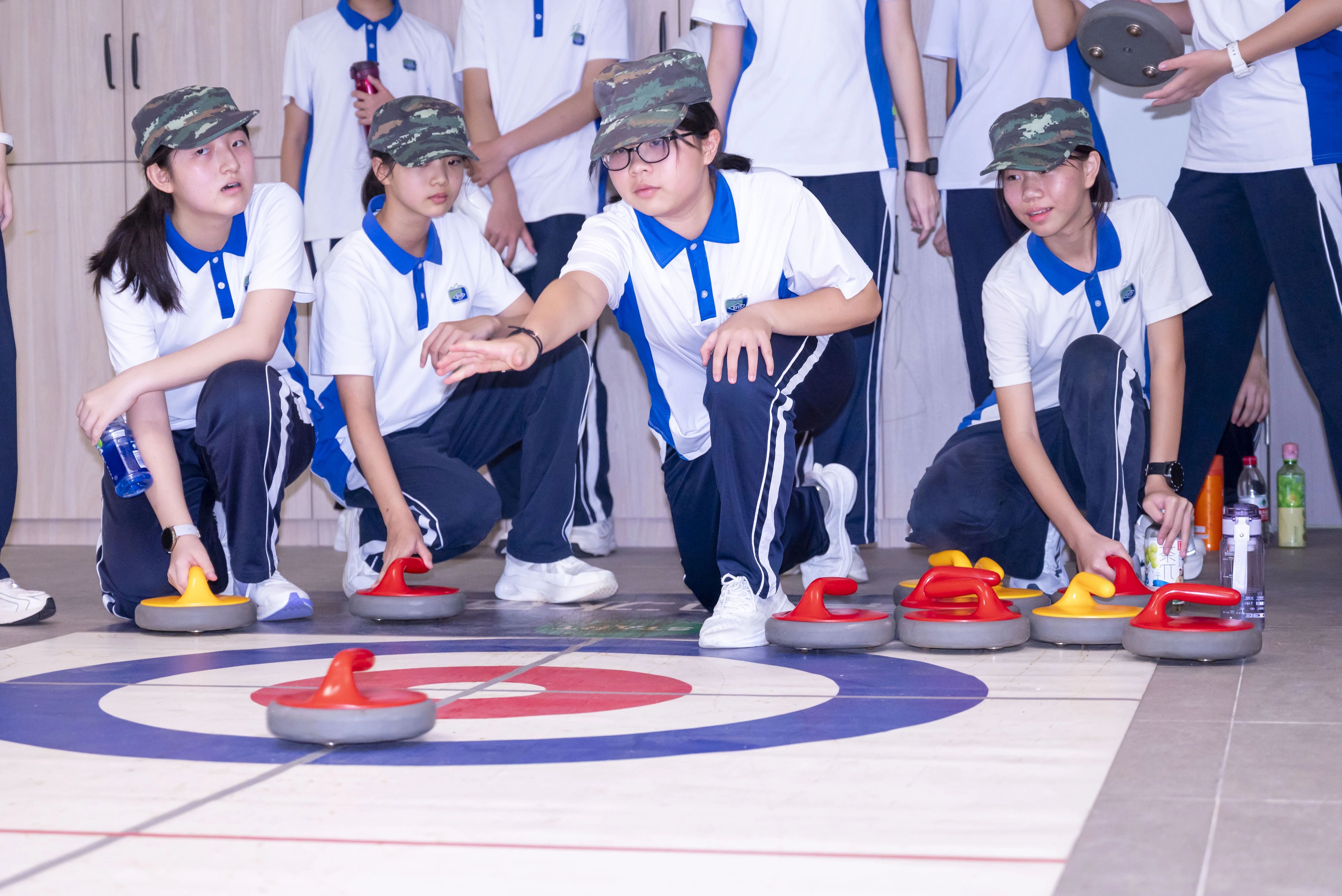 这是一场团队默契与谋略双重考验的比赛。同学们轮番上场投掷冰壶,冰壶能否稳坐圆心的位置并非由一次投掷决定。