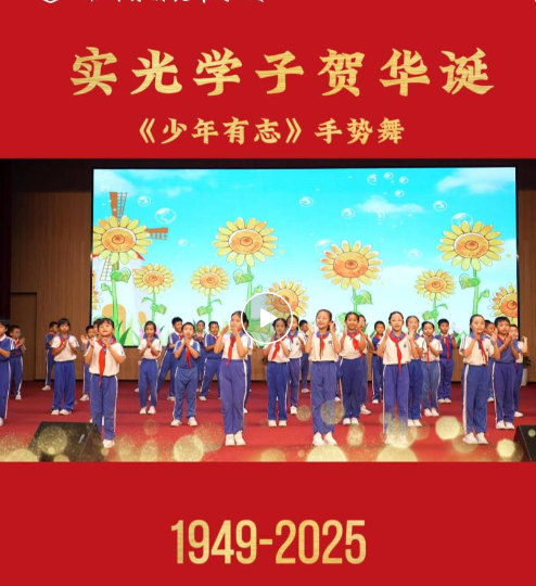 为庆祝中华人民共和国成立76周年,实光学子们共同学习了《少年有志》手势舞,他们动作整齐有力,眼神坚定自信,以青春之姿舞出新时代少年的朝气与抱负。