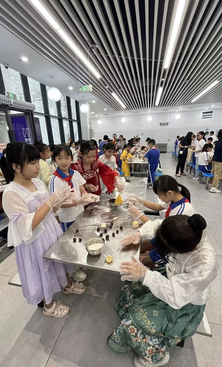 四年级学生在劳动课上走进食堂,参与了“实光文化季·四季礼韵”传统文化工坊的系列活动,通过亲手制作月饼,品秋实之味,明感恩之理。同学们揉面、包馅、压模,动作专注细致,脸上洋溢着成就感与喜悦,让传统文化在指尖流转中焕发新生。