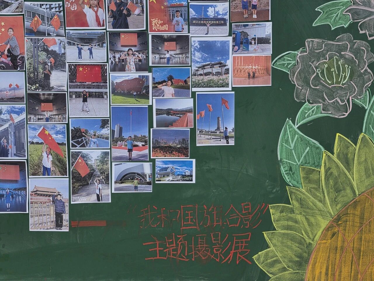 在“我为祖国拍张照”摄影展中,同学们纷纷拿起相机或手机,捕捉身边的“中国红”与“光明景”。有的同学站在飘扬的国旗下,神情庄重地与国旗合影;有的则记录下家人团聚时露出的灿烂笑容,画面温馨动人,展现了学子们对家与国的深刻理解与真挚祝福。