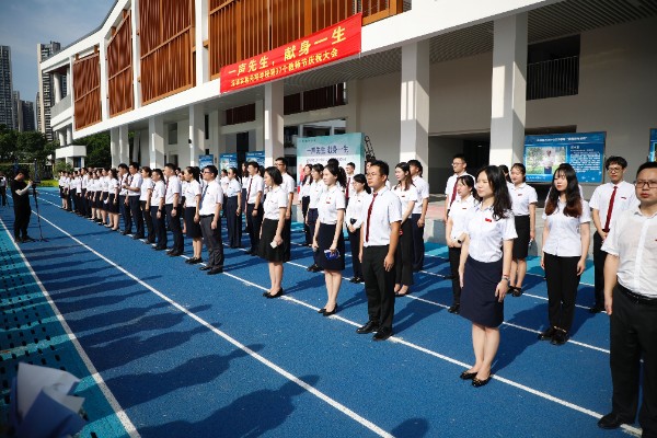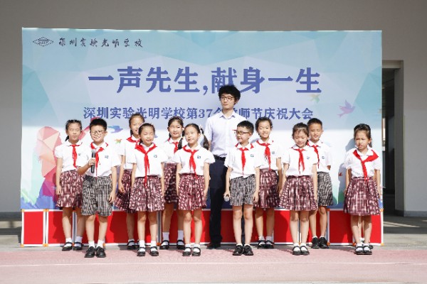 滔滔山水有时尽,绵绵师恩日月长。9月10日上午,深圳实验光明学校“一声先生,献身一生”第37个教师节庆祝大会在学校操场隆重举行,温馨的祝福和开心的笑声充满了校园的各个角落。全体师生身着实验校服,笔挺地站立在操场上翘首以盼大会的到来。