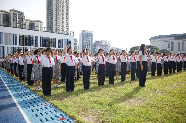 教师是太阳底下最崇高的职业,道德情操更是好老师践行教育使命的核心品质。在王喜峰校长的带领下,深圳实验光明学校全体教师在国旗下、在学生前做出了郑重承诺。全体教师将做学生健康成长的指导者和引路人,用行动去践行铿锵有力的句句誓言!