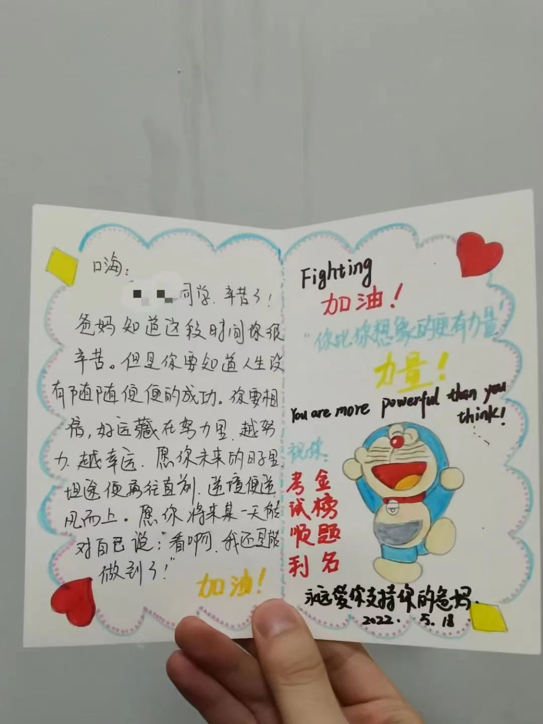 宿舍床头静静等待的还有来自父母的爱。一句句寄语、一份份牵挂和期待,在九年级孩子的心头,汇聚成感恩的泪水,转化为不竭的动力。