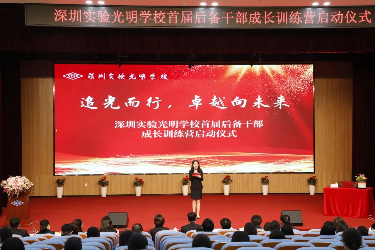 为认真贯彻执行干部队伍年轻化、知识化、专业化的方针,积极培养和造就一支素质优良、数量充足、结构合理的后备干部队伍,2024年3月22日下午,我校召开本学期第二次教职工大会,并举行首届后备干部成长训练营启动仪式。深圳实验学校党委书记夏育华、深圳实验光明学校校长朱灵辉、副书记倪娟、副校长李晨及全体教职工出席本次会议。会议由鞠文轩老师主持。