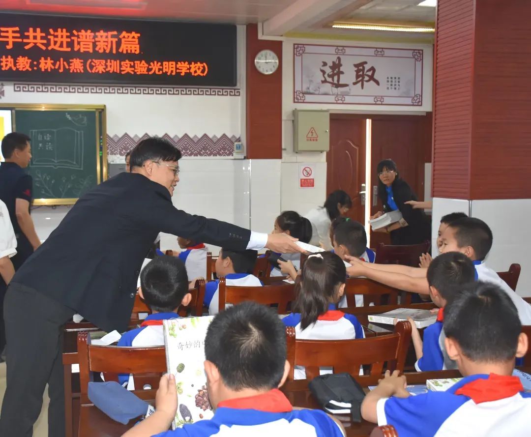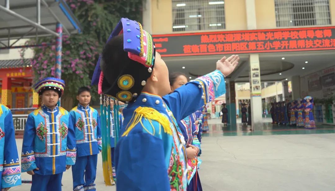 座谈会结束后,深圳实验光明学校与田阳区第五小学举行了“粤桂两地结对帮扶学校”授牌仪式。