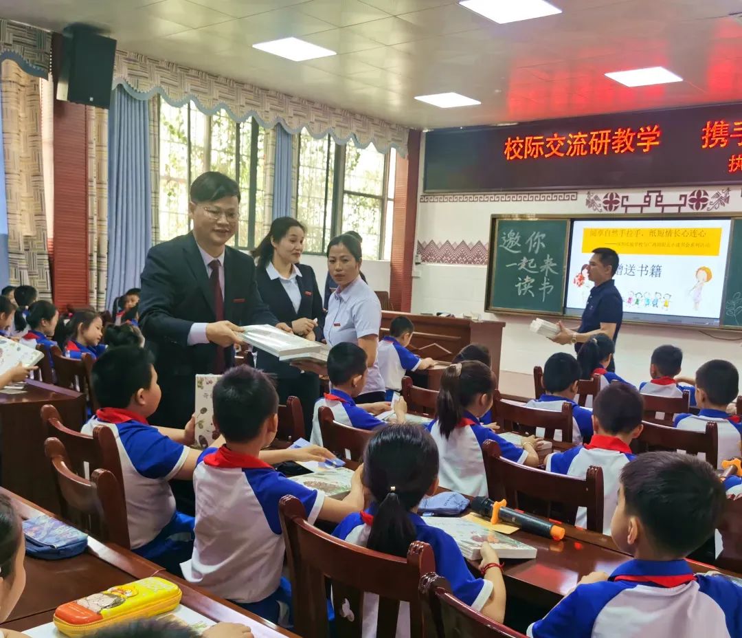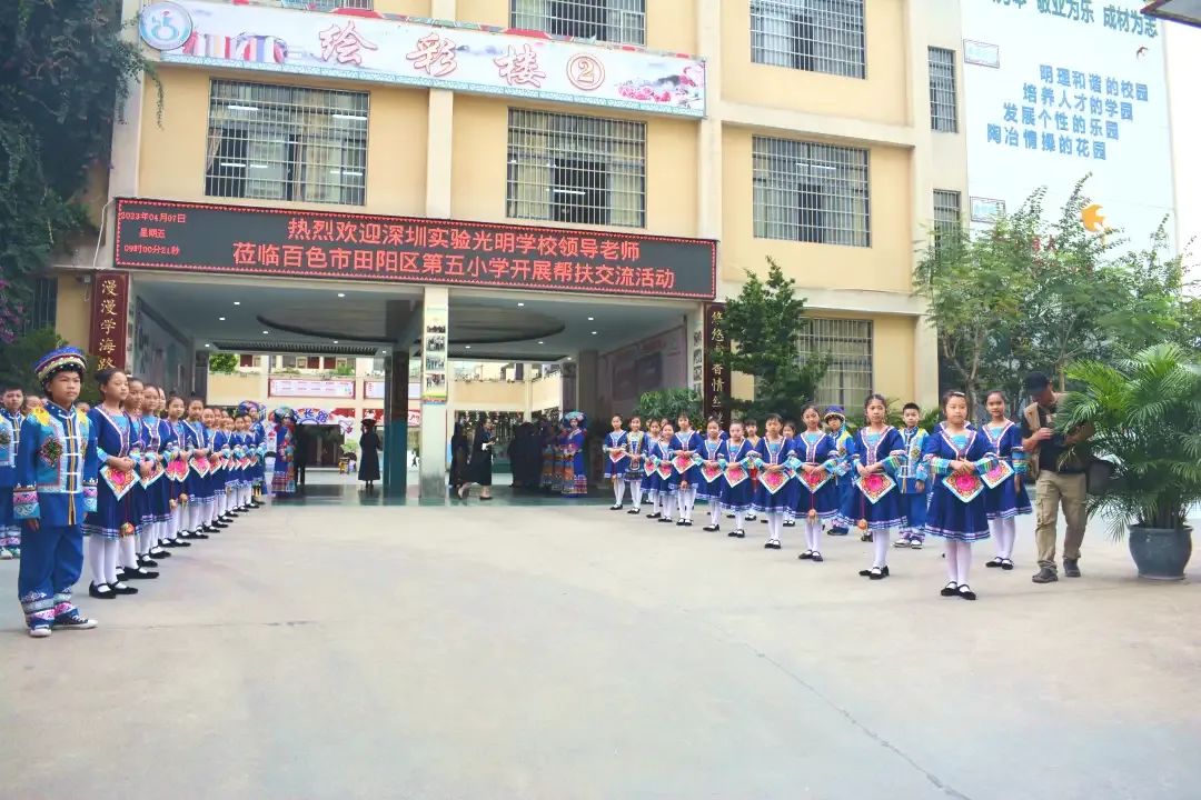 春日书香溢,春风送真情。为落实中共深圳市光明区委教育工作委员会的相关要求,充分发挥深圳市光明区现有教育资源优势,促进教育均衡与高质量发展,进一步加强百色市田阳区第五小学与深圳实验光明学校两校之间的教育教学交流,相互学习,携手共进,2023 年 4 月 7 日上午深圳实验光明学校朱灵辉校长一行 6 人到田阳区第五小学开展教育交流帮扶指导活动,百色市田阳区教育局教研室黄献良主任出席活动。