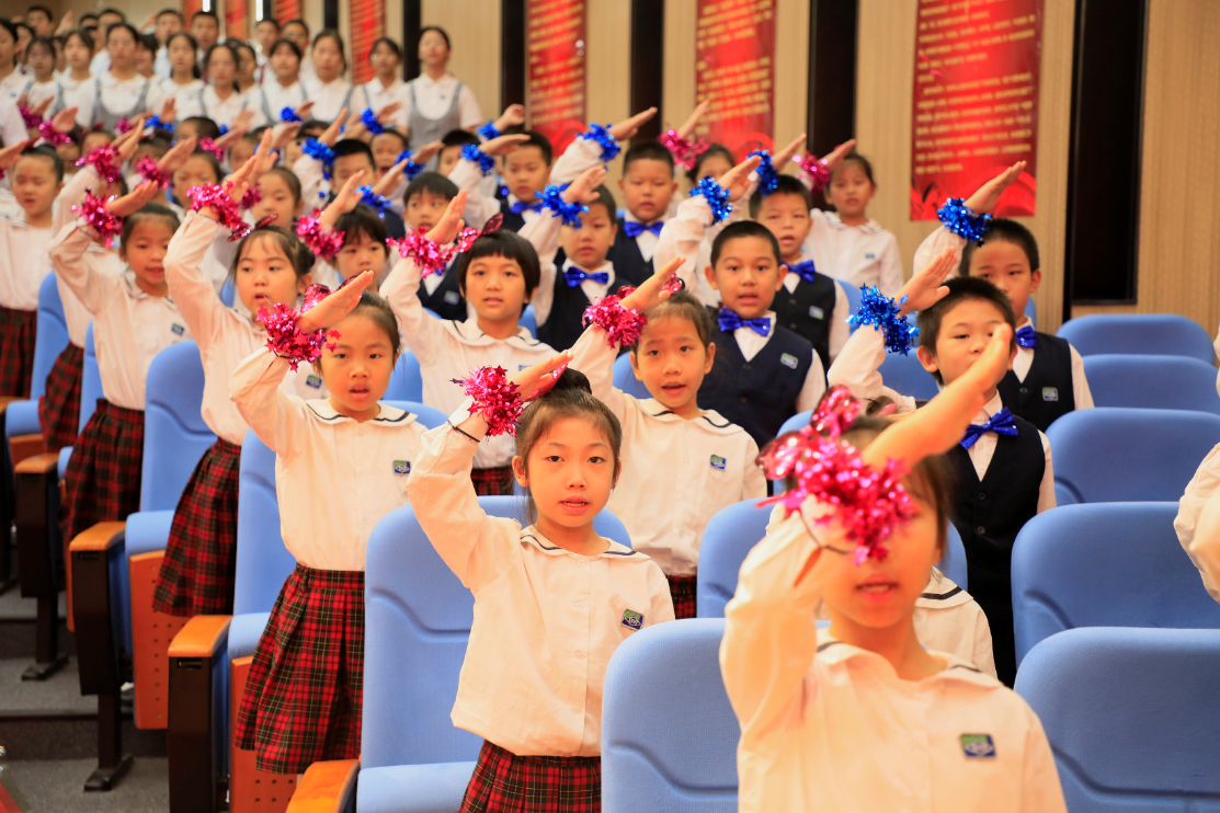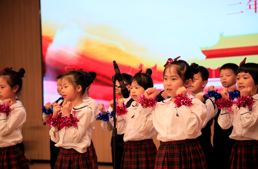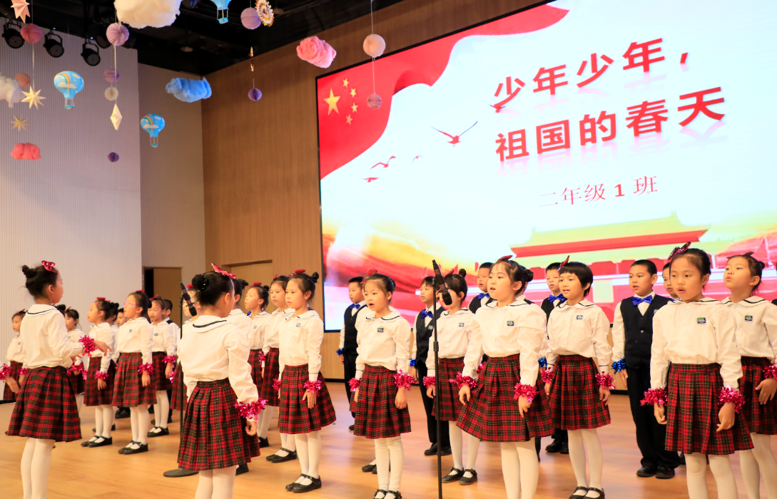 虽然本次“实验学校奖奖学金”的评奖是针对初中学段学生的,但小学学段的同学们也用自己的方式向哥哥姐姐们表达祝贺之情。二(1)班同学们带来《少年少年,祖国的春天》的歌曲表演。他们也用稚嫩、响亮的歌声表达了自己坚定的信念,希望和梦想的种子也悄悄地在他们心中开始发芽。