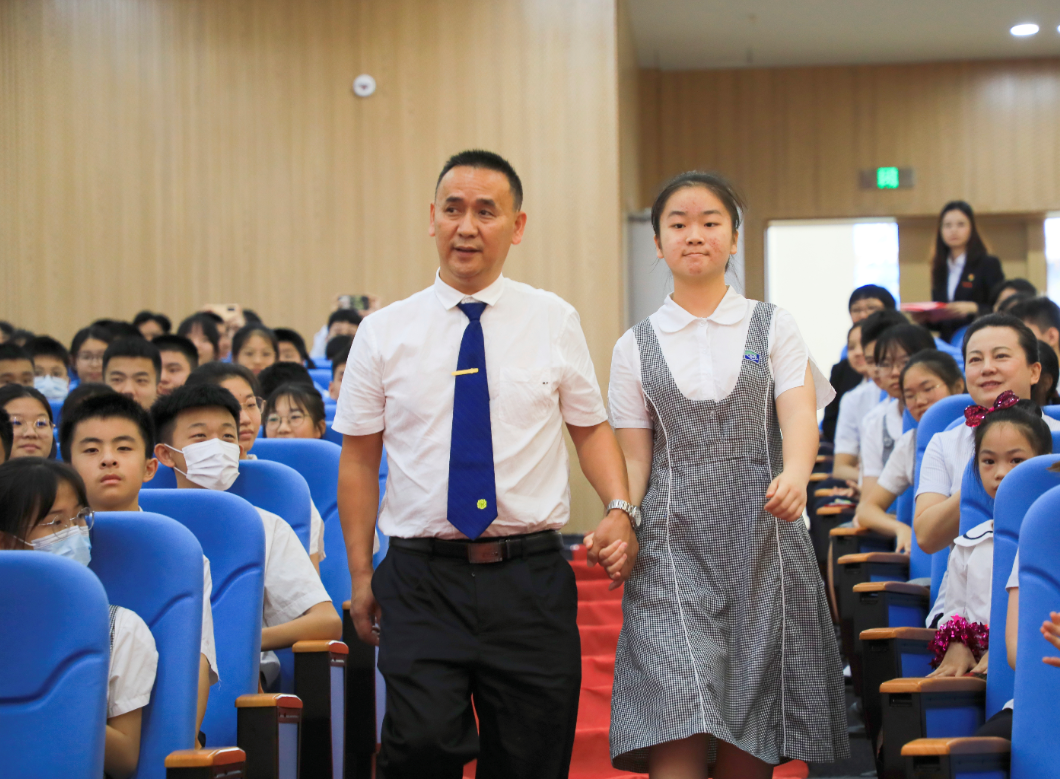 “实验学校奖奖学金”获奖者宿钰彬、何妍、卢浩锦与父母相挽,缓缓走过红毯,登上荣誉的颁奖台,这是属于他们和深圳实验光明学校的荣耀时刻!