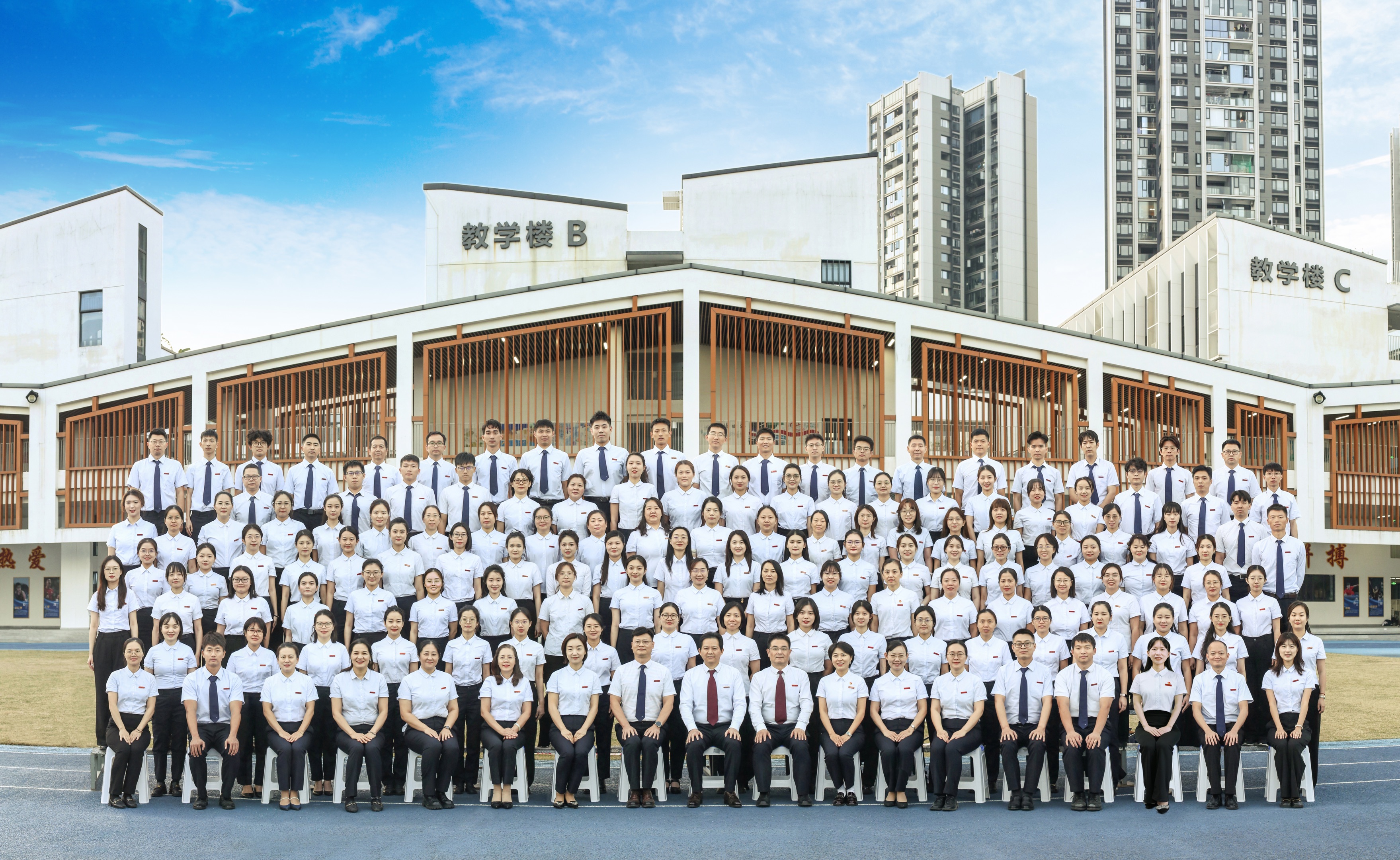 学校现有134名专任教师,硕士研究生学历教师占比超60%。其中,正高职称教师1人,高级职称教师11人,中级职称教师56人。广东省中小学名师工作室主持人1人,粤派名师工作室主持人1人,南粤优秀教师1人,深圳市名班主任工作室主持人1人,光明区年度教师1人,市区级以上名师13人,区级以上骨干教师28人。