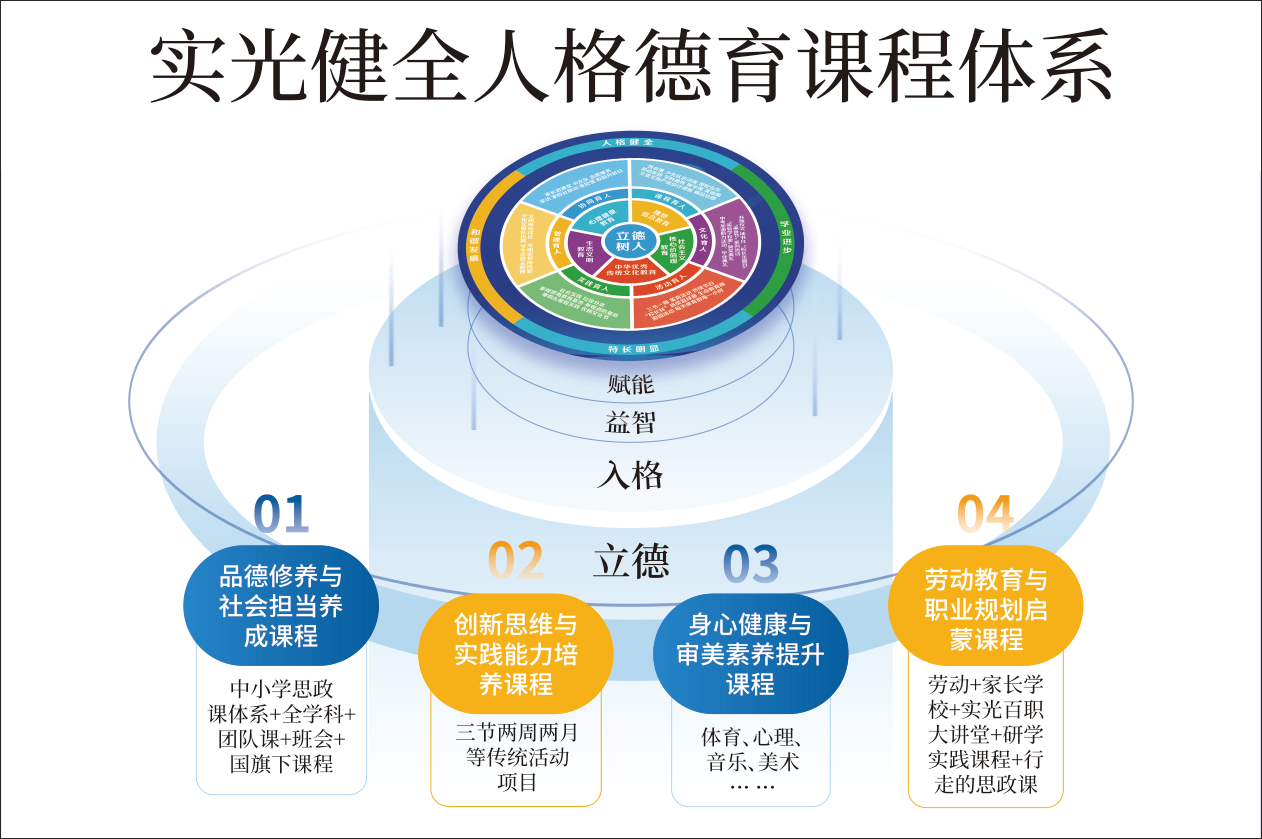 学校秉承“健全人格教育”理念,全面推进德智体美劳五育并举,围绕“立德 入格 益智 赋能”的育人特色,通过“实光”健全人格德育课程体系,助力学生全面发展。