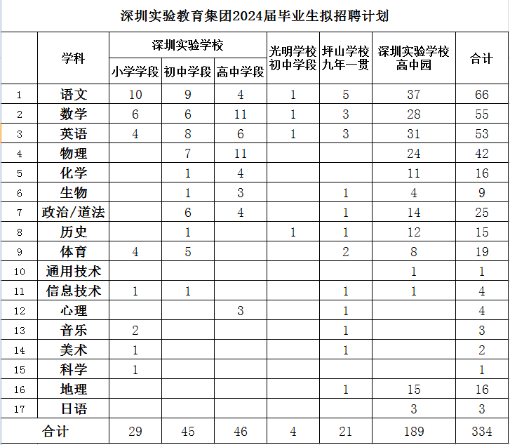 因学校发展需要,深圳实验教育集团面向2024年应届毕业生公开招聘教师334人,现就深圳实验学校和集团成员校(深圳实验光明学校、深圳实验坪山学校、深圳实验学校高中园)网上预报名及现场宣讲事宜,发布启事。