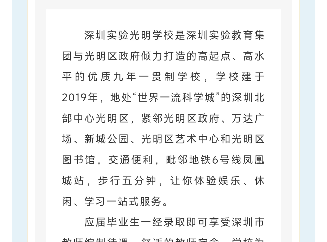 深圳实验光明学校(初中语文1名,初中数学1名,初中英语1名,初中历史1名)